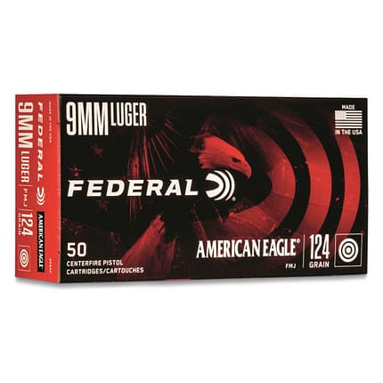 FEDERAL AMERICAN EAGLE, 9MM, FMJ, 124 GRAIN, 50 ROUNDS