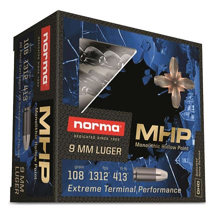 NORMA EXTREME TERMINAL PERFORMANCE, 9MM, MHP, 108 GRAIN, 20 ROUNDS ITEM # WX2-719689