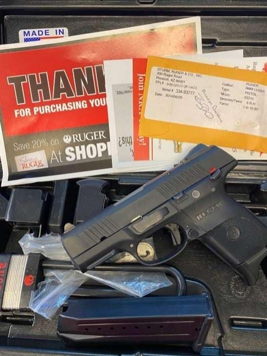 This is a used Ruger SR9c in black with 2 mags. One is 17 round and the other is 9 rounds. Know the laws in your state before bidding as there is a high cap mag included. Original box and paperwork are also included plus the Ruger lock. Gun shows some wear pictured